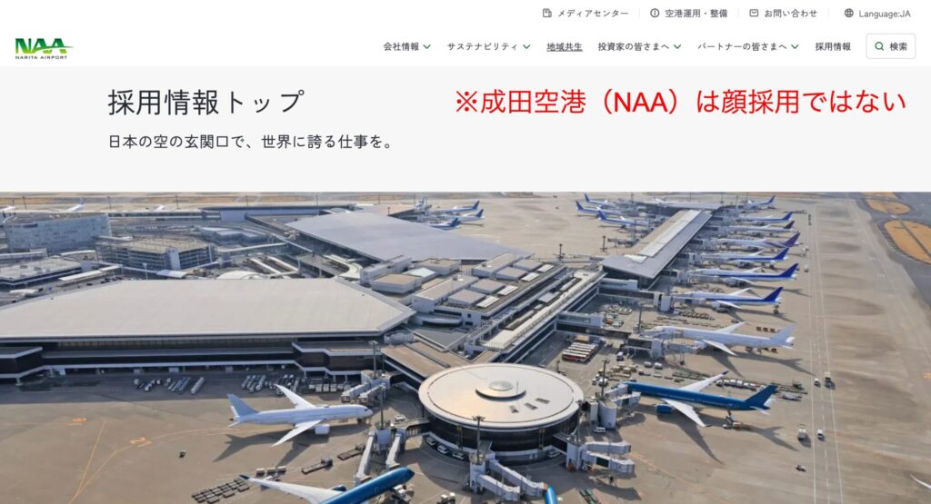 結論から言えば、成田国際空港株式会社(NAA)は顔採用をしていません。