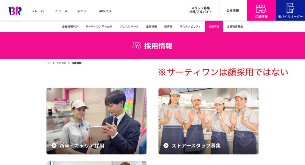 引用:サーティワン 採用ページ