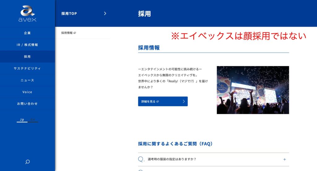 エイベックスの公式採用サイトでは、以下のように明言されています。