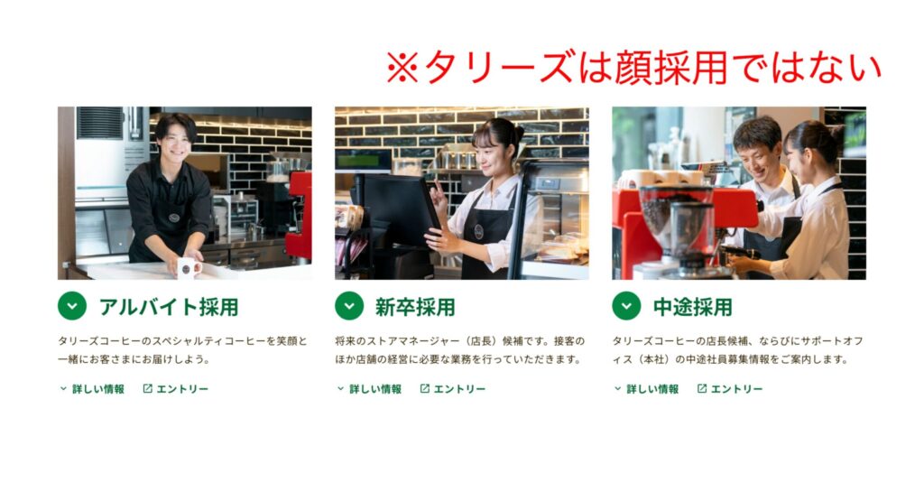冒頭でもお伝えしましたが、タリーズが外見を採用基準にしている事実はありません