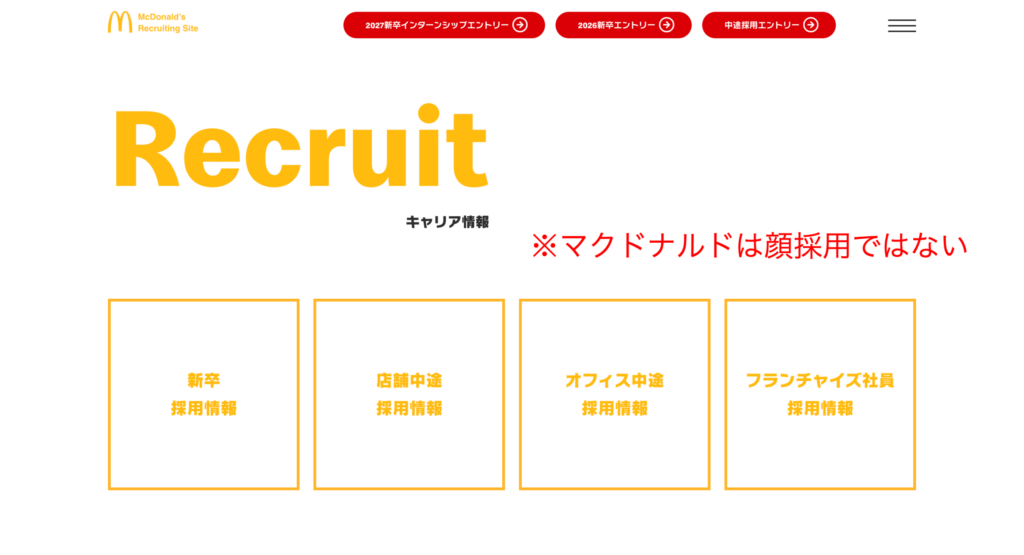 実際に、マクドナルドの公式採用情報では以下のように明記されています。