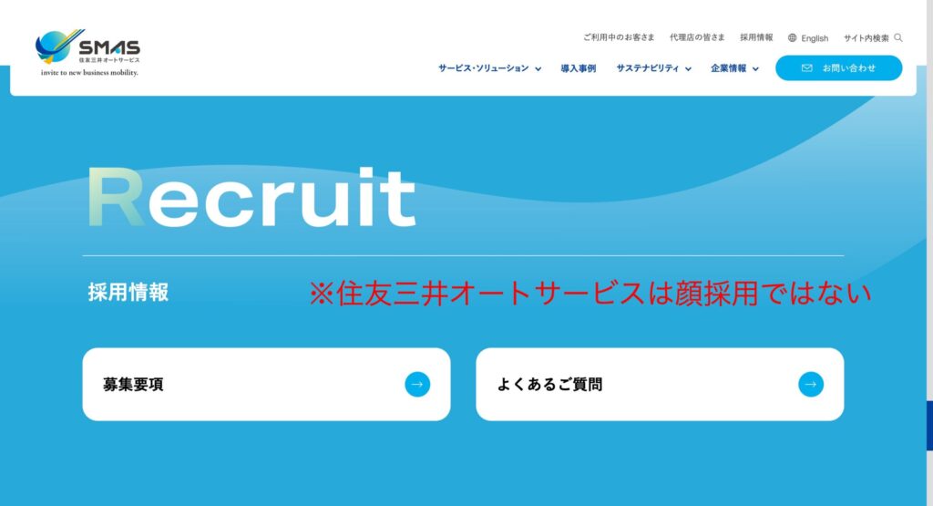 実際に、住友三井オートサービスの公式採用サイトでは以下のように明言されています。