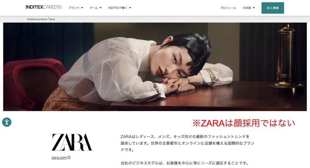ありません。ZARAは公式に「人物重視採用」を掲げており、外見を選考基準にしているという情報は一切ありません。